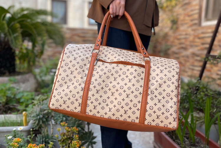 ساک مسافرتی و ورزشی چرم مصنوعی طرح لوکس (مشابه LV) با دسته بلند – انتخابی شیک و بادوام